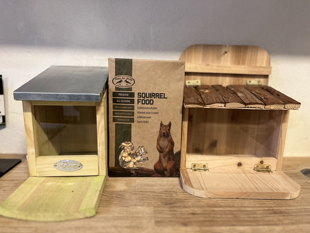 - Frø og mejsebolde, standard med og uden net, og luksenøddebolde, til havens fugle samt ophæng til foder